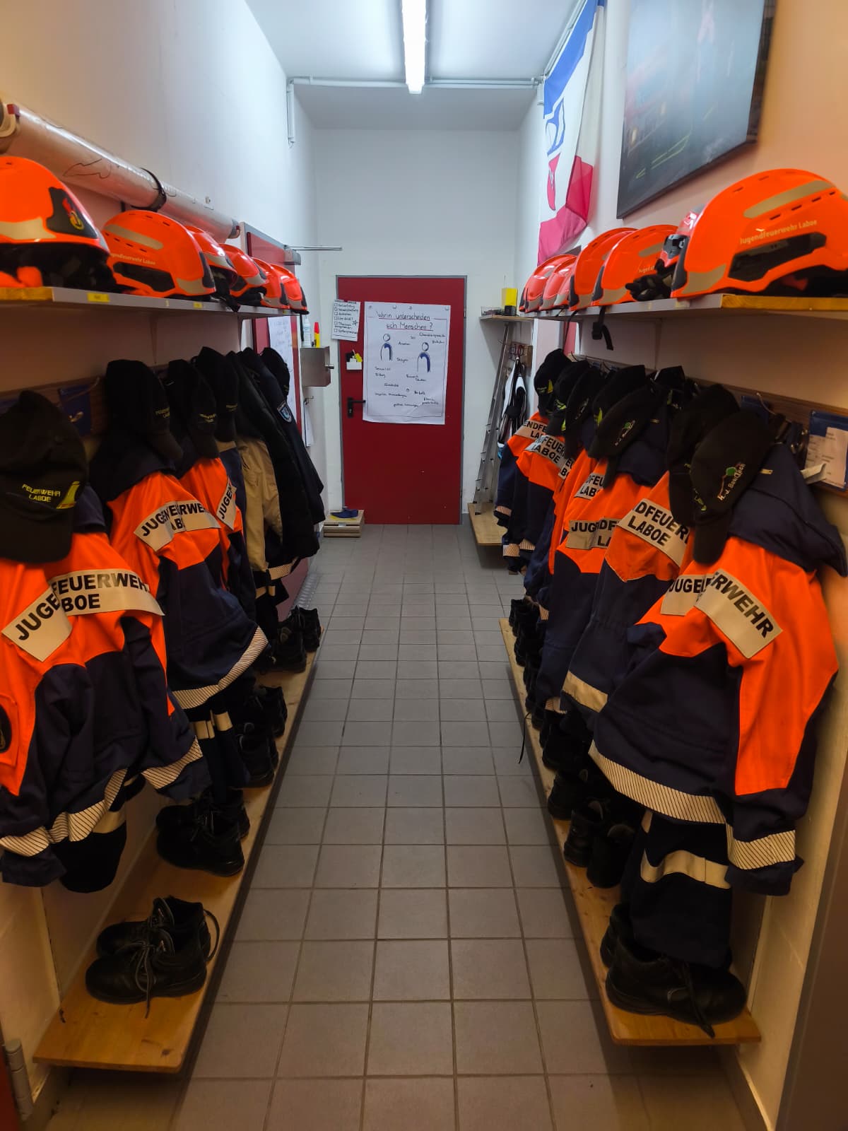 Derzeit werden private Kleidungsstücke unter der Schutzbekleidung gelagert, Mützen liegen unter den Helmen, und die Ausrüstung kann dadurch nicht richtig auslüften. Das führt zu Unordnung und erschwert die richtige Aufbewahrung.