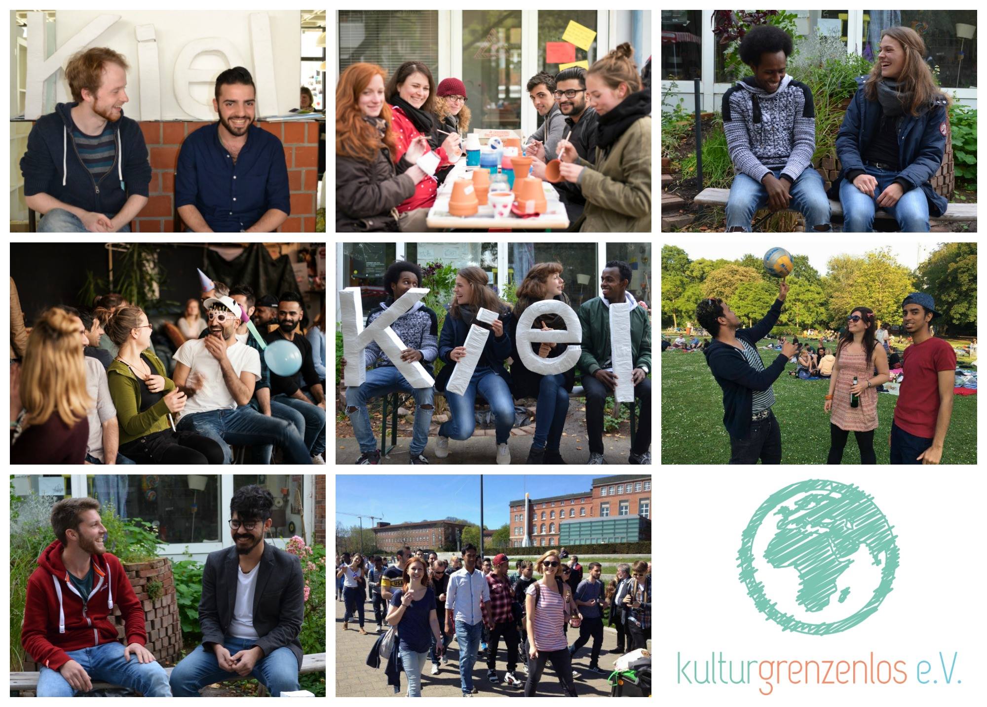 Unser Verein kulturgrenzenlos e.V. - entstanden 2016 aus einer kleinen, studentischen Initiative an der Kieler Uni - schafft interkulturelle Begegnungen zwischen KielerInnen und Geflüchteten. Dabei vermitteln wir Menschen mit ähnlichen Interessen in Tandems und machen zweimal im Monat große, gemeinsame Treffen: Grillen im Park, Kickerturnier, Ausflug zum Strand...Mithilfe von kulturgrenzenlos sind viele neue Freundschaften, WG's, Jobmöglichkeiten und einfach tolle, gemeinsame Stunden entstanden. Unterstützen Sie uns für ein buntes, vielfältiges Kiel!